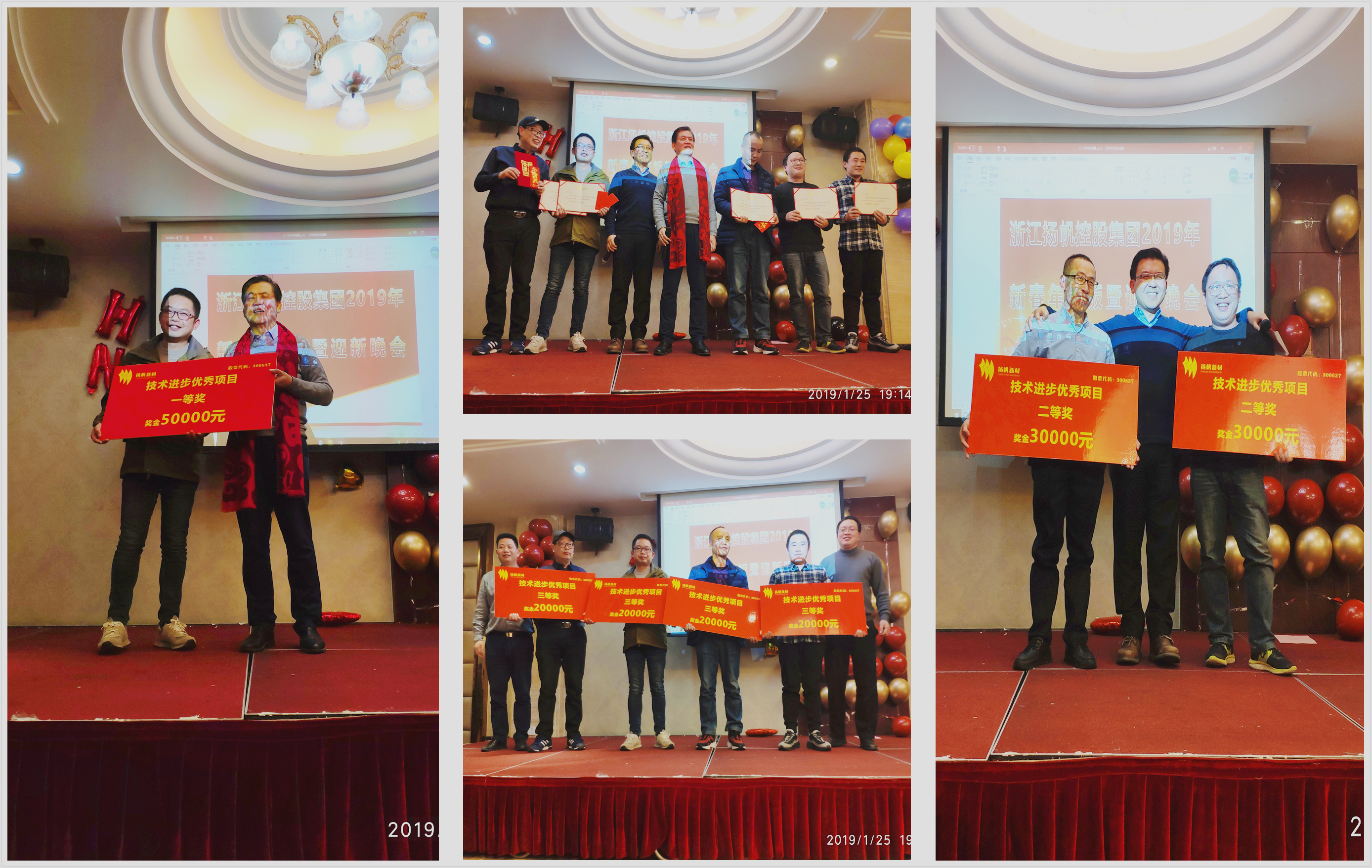 2019年1月25日,浙江揚(yáng)帆新材料股份有限公司(以下簡(jiǎn)稱(chēng)“揚(yáng)帆新材”、“公司”)技術(shù)委員會(huì)在公司杭州年會(huì)上舉行了隆重的頒獎(jiǎng)典禮,浙江揚(yáng)帆控股集團(tuán)有限公司(以下簡(jiǎn)稱(chēng)“控股集團(tuán)”)董事長(zhǎng)、公司董事樊培仁,公司董事長(zhǎng)樊彬,總經(jīng)理、技術(shù)委員會(huì)組長(zhǎng)李耀土,技術(shù)總監(jiān)、技術(shù)委員會(huì)秘書(shū)長(zhǎng)吳紅輝等參與典禮并頒獎(jiǎng)。