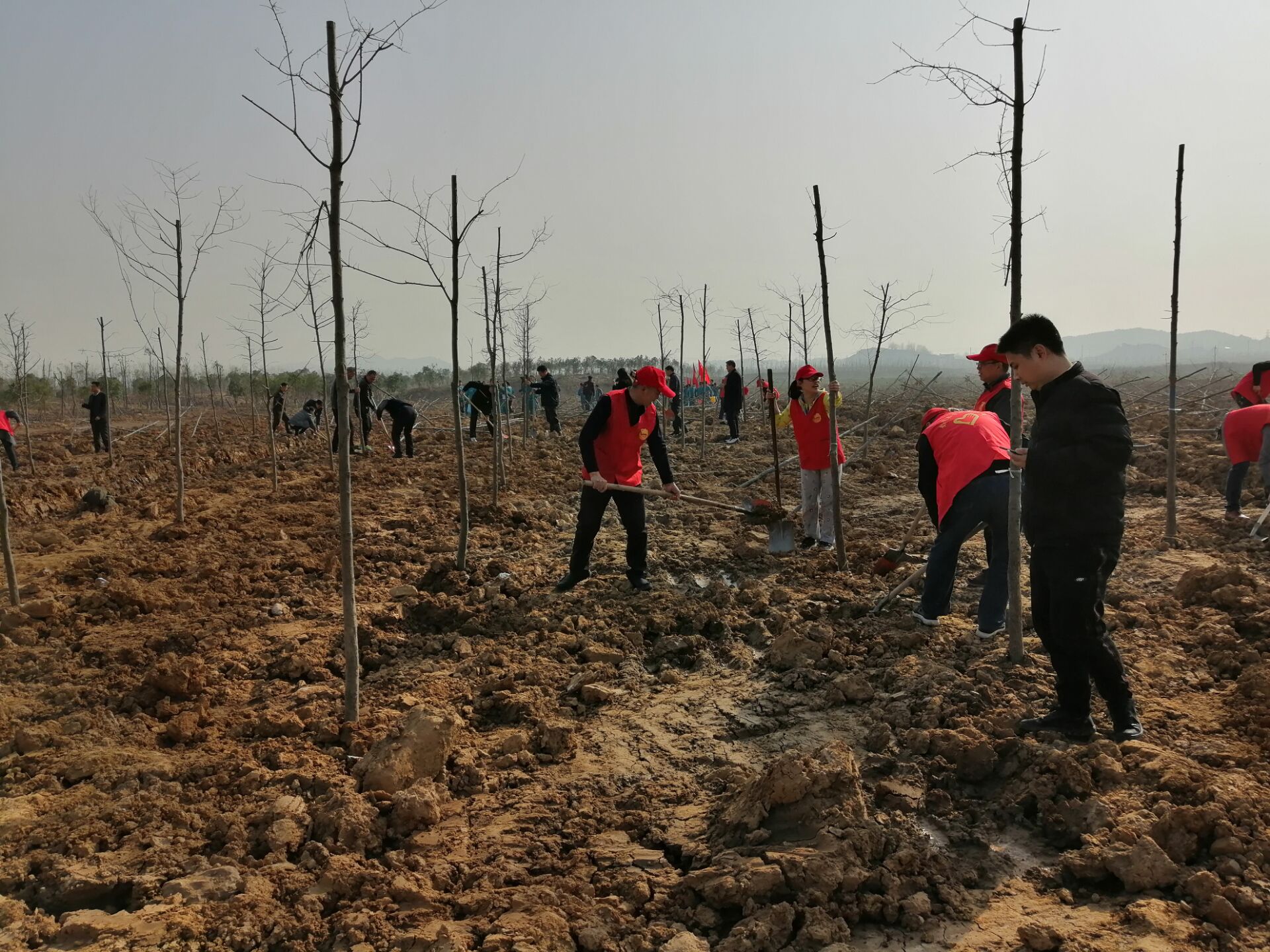 3月12日上午 ,團(tuán)員們在團(tuán)委書記的帶領(lǐng)下到達(dá)預(yù)定地點(diǎn),按照預(yù)先的分組,全體人員很快就投入了植樹勞動(dòng),植樹現(xiàn)場,熱鬧非凡。團(tuán)員們分工協(xié)作,有的挖坑,有的植樹苗,栽得認(rèn)真,干得賣力,整個(gè)植樹活動(dòng)現(xiàn)場一片熱火朝天的勞動(dòng)景象。大家一邊植樹,一邊了解今年種植的樹木品種、生長周期,樹木成活等情況,充分享受著植樹活動(dòng)帶來的樂趣。經(jīng)過一上午的努力,200棵樹苗栽植完成,活動(dòng)取得圓滿的成功。