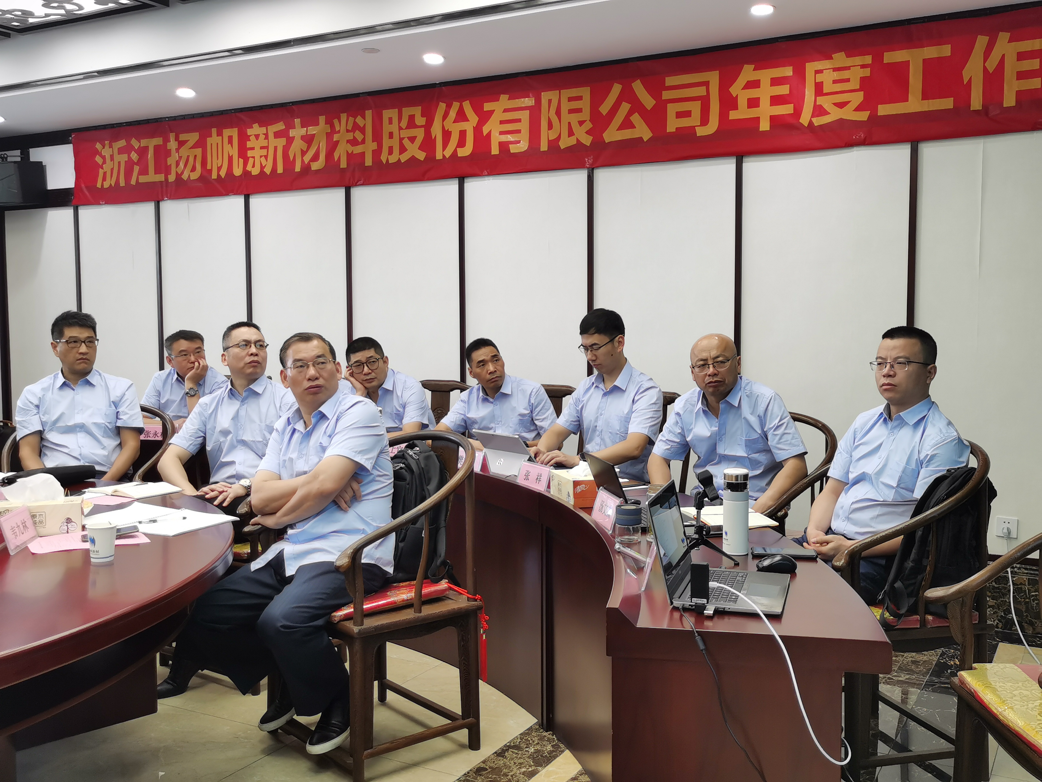 2020年7月25日,揚(yáng)帆新材2020年中高管工作會(huì)議在杭州召開,公司控股股東浙江揚(yáng)帆控股集團(tuán)有限公司董事長樊培仁,揚(yáng)帆新材董事長樊彬、總裁李耀土等股份及各子公司高管參加了此次會(huì)議,公司技術(shù)顧問、財(cái)務(wù)顧問等悉數(shù)出席了會(huì)議。