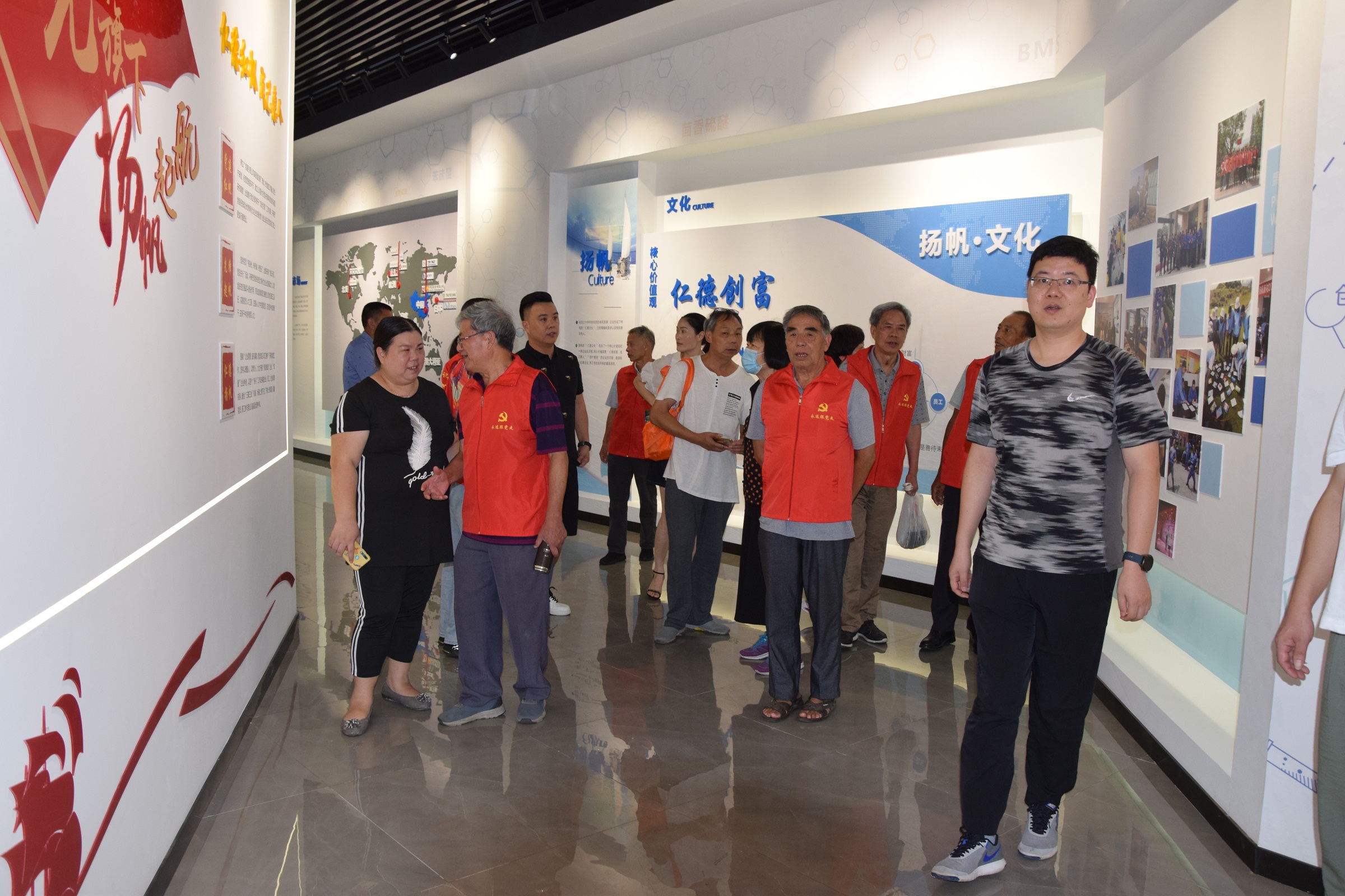8月9日上午,載著老黨員的大巴車緩緩來到揚帆新材上虞生產(chǎn)基地。基地張永彬總經(jīng)理帶領(lǐng)管理層熱情迎接老前輩的到來。在張總的陪同下,各位老黨員先后參觀了企業(yè)發(fā)展(產(chǎn)品)展示廳、黨建展廳、公司中控室和生產(chǎn)現(xiàn)場。在企業(yè)發(fā)展展廳,老黨員們駐足觀看 ,一張張老照片、一幅幅新場景,讓老黨員感受到了公司的巨大變化和飛躍發(fā)展。“不一樣了”是其中出現(xiàn)的一個高頻詞匯,回憶著自己在壽爾福工作的舊年時光,老黨員們頗多感觸,大家憶往昔歲月,談變化,談感想,都衷心祝愿公司發(fā)展越來越好。