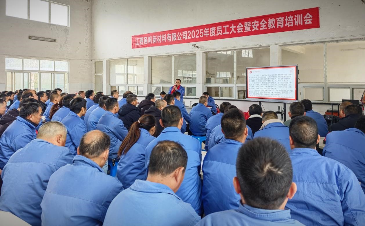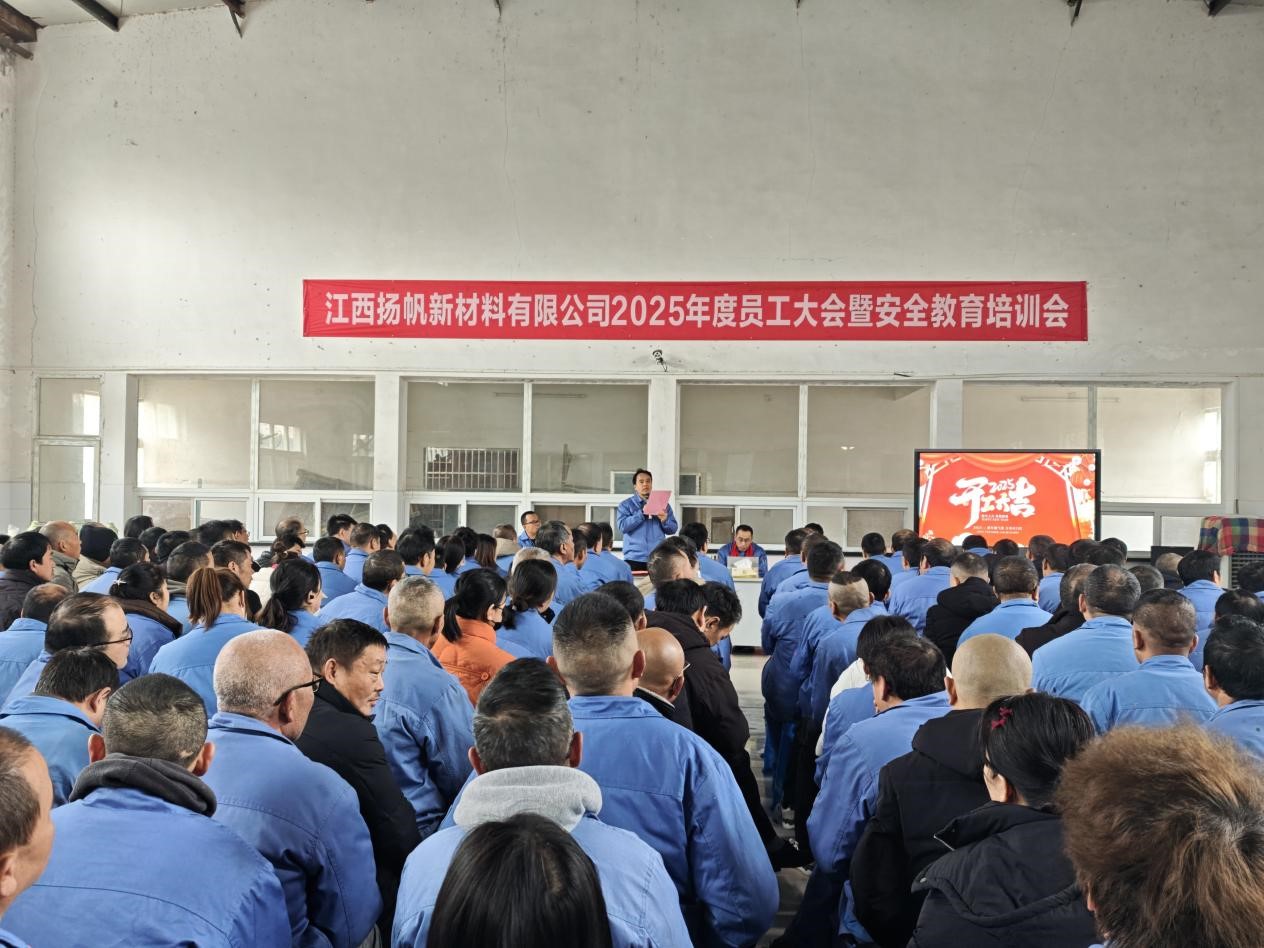 2025年2月6日,江西揚(yáng)帆公司召開2025年度員工大會(huì)暨安全教育培訓(xùn)會(huì)。公司總經(jīng)理余立志及經(jīng)營班子成員和全體員工參加了此次會(huì)議。會(huì)議由副總經(jīng)理呂雪皓主持。